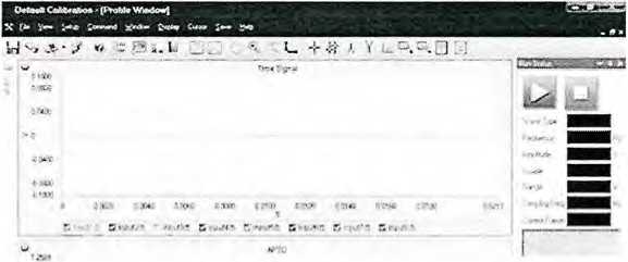 В поле Sampling Freq (Частота опроса) выводится постоянное значение 48 000 Гц, в поле Current Frame (Текущий кадр) выводится значение текущего кадра в диапазоне от 1 до 200. Вычисления корректирующих коэффициентов производится при снятии 200 кадров (задано в п. 7.3.1) и занимают некоторое время, в течение которого графики на экране не обновляются. Ниже на сером фоне выводится информация о текущей операции - Calibrate Input Channel (Калибровка входных каналов).