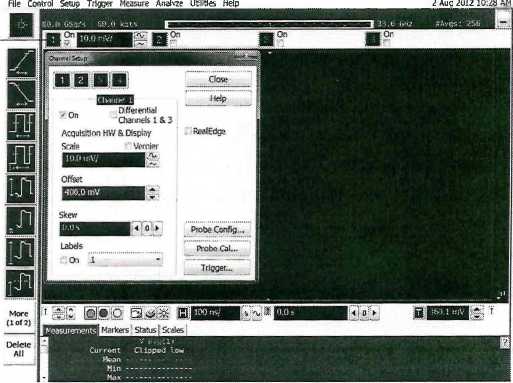 8.6.8 Нажать клавишу CLEAR DISPLAY на осциллографе и подождать, пока значение #Avgs в левом верхнем углу экрана осциллографа не станет равно 256.