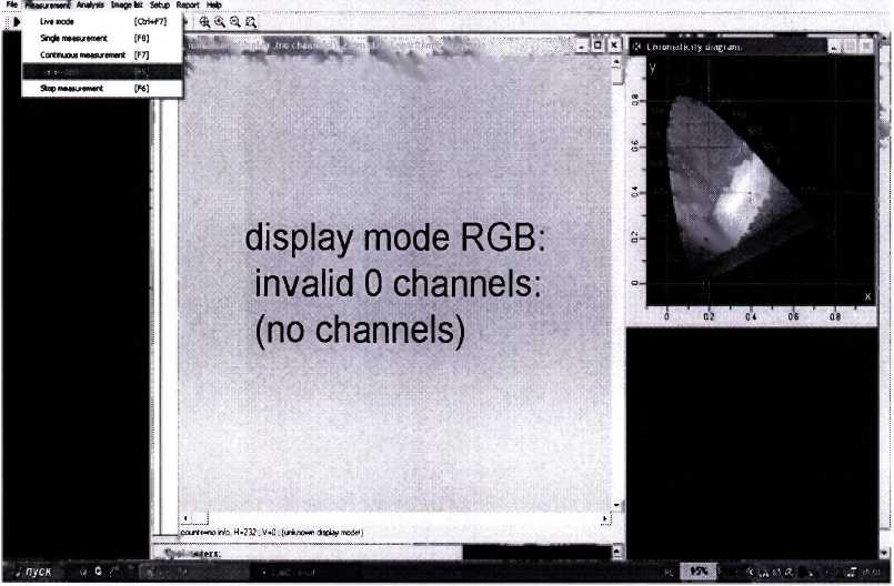 7.4.1.6 Открыть защитную крышку объектива измерителя и нажать на клавиатуре клавиши «CTRL+F7» - режим Live mode, чтобы убедиться, что источник яркости попал в поле измерения, и с помощью объектива настроить необходимую резкость изображения.