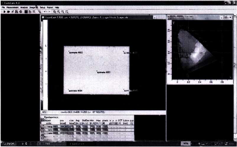 Рисунок 7 - Панель управления измерениями координат цветности программы LumiCam