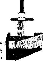 8.10.30. Установить преобразователь так, чтобы передняя грань призмы упиралась в правую грань концевой меры как показано на рисунке 5 (для того чтобы исключить перемещение концевой меры по поверхности меры №ЗР из комплекта мер ультразвуковых ККО-3, с левой стороны от концевой меры установить ещё одну концевую меру).