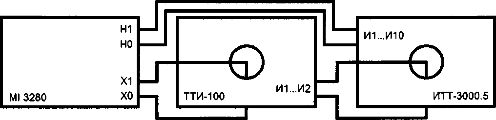 Рисунок 2 - Схема соединений при определении погрешности измерений коэффициента трансформации в диапазоне от 10 до 500.