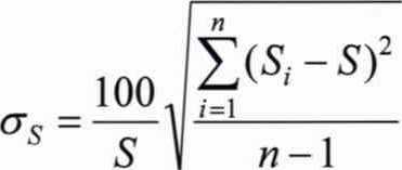 где - среднее арифметическое и i-тое значение площади пика соответственно;
