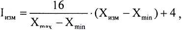 7.4.4.4 Если показания ИС нельзя просмотреть в мА, то при линейной функции преобразования значение тока 1^, мА, рассчитывают по формуле