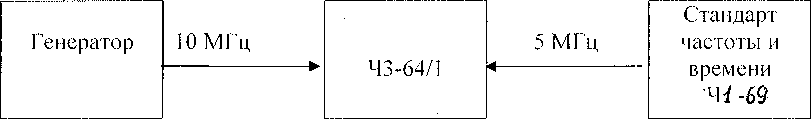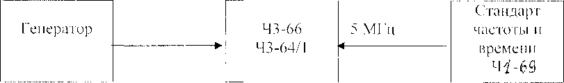 Частотомер переводят в режим работы от внешнего источника опорного сигнала частотой 5 МГц, который подают от стандарта частоты и времени ‘ Частотомером