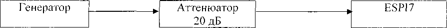 Определение уровня гармонических составляющих по отношению к уровню основной гармоники определяют с помощью анализатора спектра ESPI7. Измерения проводят на частотах 100 кГц (20 МГц при установленной опции SML-B3); (100; 500) МГц; (1,1; 2,2; 3,3) ГГц при выходном уровне генератора 0 dBm по схеме рис. 9.5. Маркер анализатора спектра устанавливают на частоту основной гармоники, обнуляют показание маркера и, устанавливая маркер на частоты 2 и 3 гармонической составляющей сигнала, измеряют относительный уровень гармонических составляющих [дБн]. На частоте 3,3 ГГц измеряют только уровень 2 гармонической составляющей.