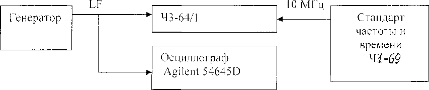 Измерения осуществляют при помощи частотомера 43-64/1 и осциллографа Agilent 54645D по схеме приведенной на рис. 9.8.