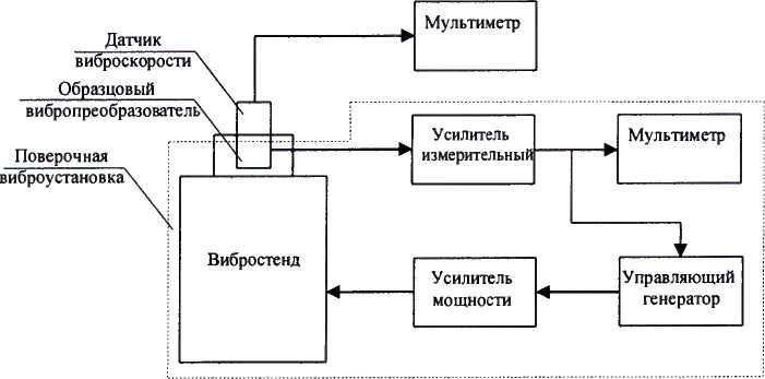 Виброустановка поверочная 2-го разряда по ГОСТ Р 8.800-2012, диапазон частот от 5 до 2000 Гц, Мультиметр цифровой 34401 А, диапазон частот от 3 Гц до 20 кГц, (0 -10) В, пределы допускаемой абсолютной погрешности ± (1-10’2 -U + 2-1 О'4 -Ипред) |