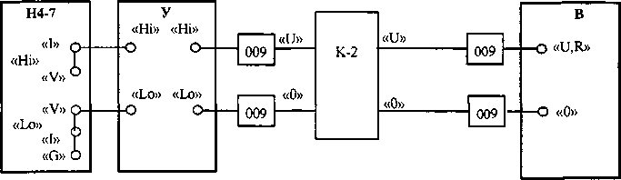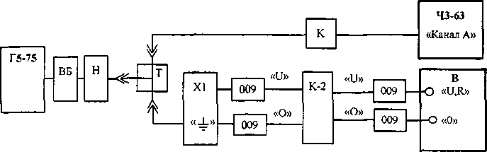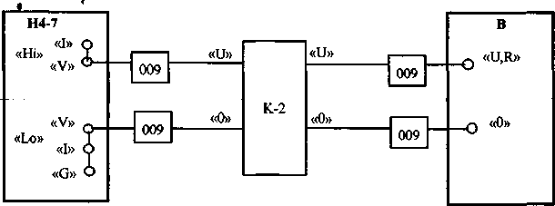 К, 009 - кабели измерительные и насадки из комплекта поверяемого вольтметра; В - поверяемый вольтметр.