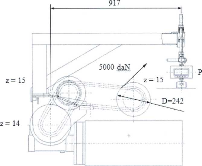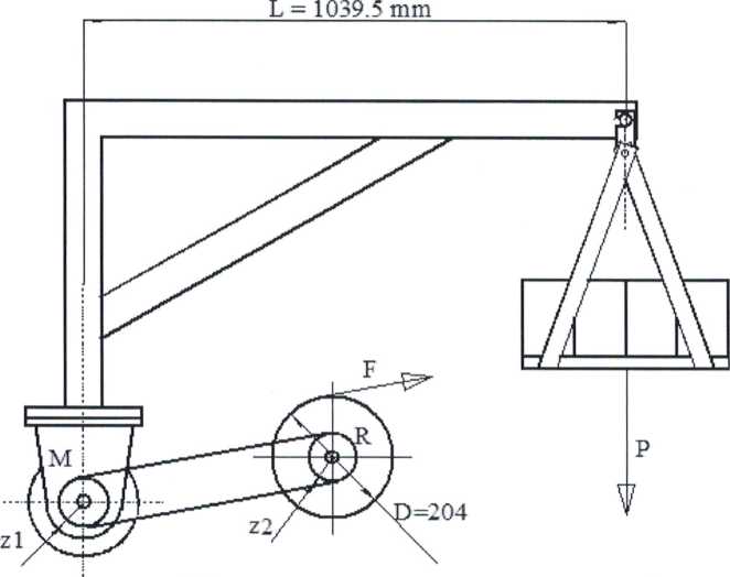 R = ролик zl = 14 зубцов z2 = 14 зубцов