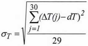 8.4.5 Определить СКО случайной составляющей погрешности синхронизации внутренней шкалы времени комплекса с национальной шкалой координированного времени UTC(SU) по формуле (10):