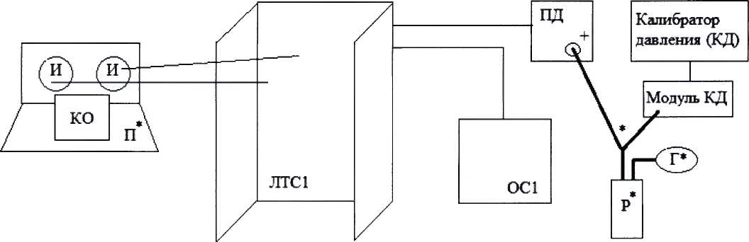 8.3.1.1 Собрать схему, показанную на рисунке 1, для чего снять с креплений шкафа ЛТС1 инклинометр крена (±30°).