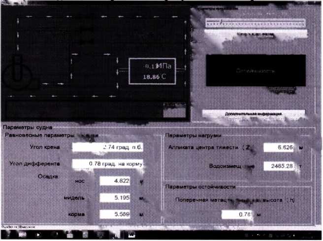 8.2.3 Результаты опробования считать положительными, если в строке состояния нет предупредительных надписей, а система в автоматическом режиме производит расчет равновесных параметров посадки. Об этом свидетельствует появление расчетных значений в главном окне управляющего интерфейса (в соответствующих полях), а также надпись «Расчет равновесных параметров» в строке состояния.
