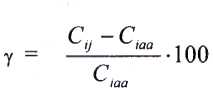 7.4.1.5. Относительную погрешность анализатора (%) при определении массовой концентрации нефтепродуктов в КР вычисляют по формуле (1) для каждого i-oro измерения каждого контрольного где