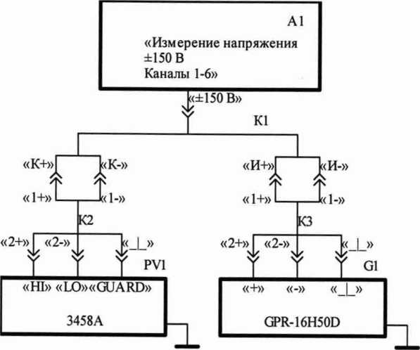 - разъём «±150 В» к разъёму «Измерение напряжения - ±150 В -Каналы 1-6» КП-ВВ191.