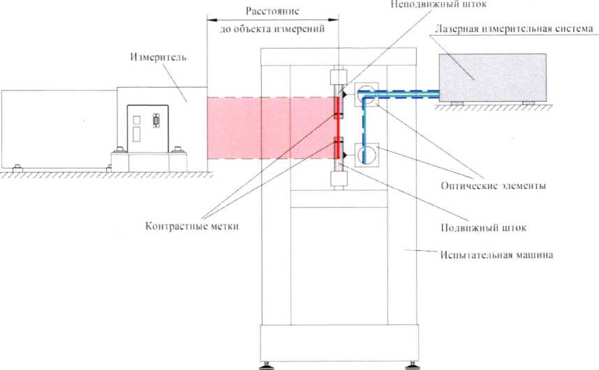 10.1.1. Для выполнения поверки измерителей, выполняющих измерения продольных перемещений (деформаций) с применением калибратора - на подвижный и неподвижный штоки калибратора нанести контрастные метки для работы в режиме «отражение», либо закрепить выносные метки для работы в режиме «просвет».