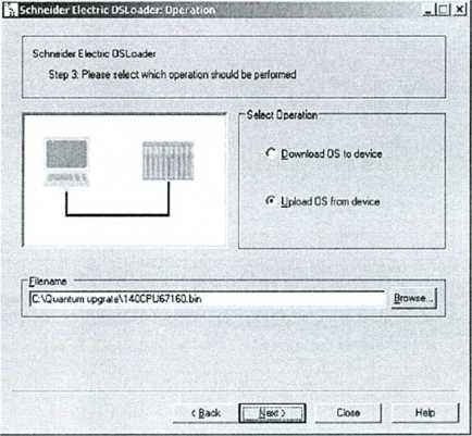 - выбрать операцию «Upload OS from device» в открывшемся окне