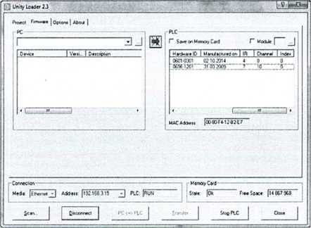 - установить связь с контроллером путем выбора коммуникационного протокола, по которому осуществляется связь (рисунок 1);