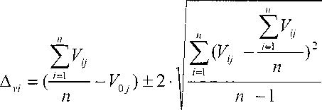 Vi - разность между измеренным поверяемым тахеометром значением i-ro горизонтального (вертикального) угла и значением i-ro горизонтального (вертикального) угла по универсальному коллиматорному стенду, взятому из свидетельства о поверке на него,