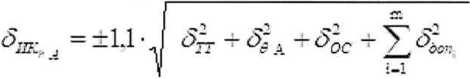 Примечание - Формулы (1), (4), (5) и (7) даны для случая, когда отклонение внешних влияющих величин от нормальных значений вызывает дополнительные погрешности только у счетчика электроэнергии, а составляющими погрешности измерения электроэнергии, обусловленными погрешностью задания интервала времени интегрирования электрической мощности, погрешностью передачи информации по ГОСТ 4.199-85, погрешностью обработки данных можно пренебречь.