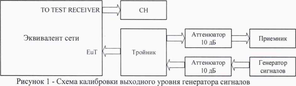Выход генератора Г4-219 посредством радиочастотного кабеля с подключить к входу «ЕиТ» эквивалента сети (на частотах свыше 10 МГц использовать генератор SMR40).