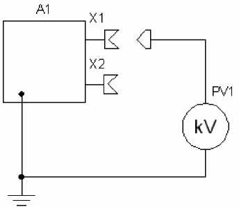 7.3. Определение метрологических характеристик 7.3.1 Проверку пределов допускаемой относительной погрешности измерения напряжения переменного тока в диапазоне 10,0...100,0 кВ проводят в следующей последовательности:-собирают схему, приведенную на рис. 2 (Приложение А).