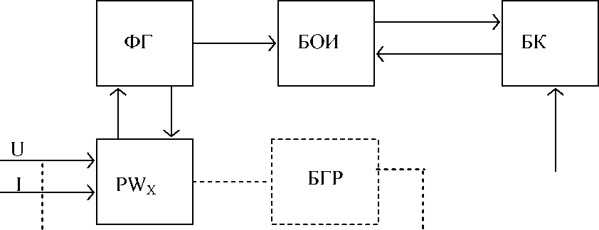 Примечание. При подключенном БГР установка предназначена для работы в однофазном режиме с информационными сигналами напряжения и тока фазы С (UC и IC соответственно). Номинальное напряжение измерительной цепи 220 В.