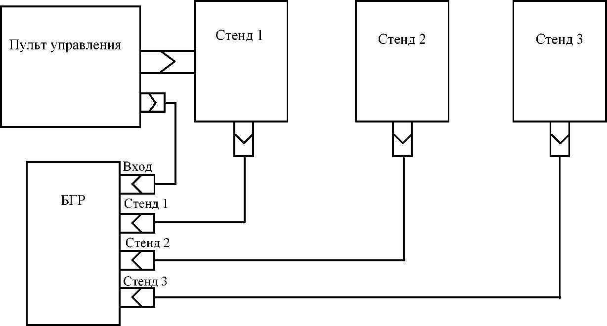 10.11.2. Подключите БГР к стендам согласно схеме соединений, приведенной на рис. 8.2, заглушки "БГР" при этом должны быть сняты.