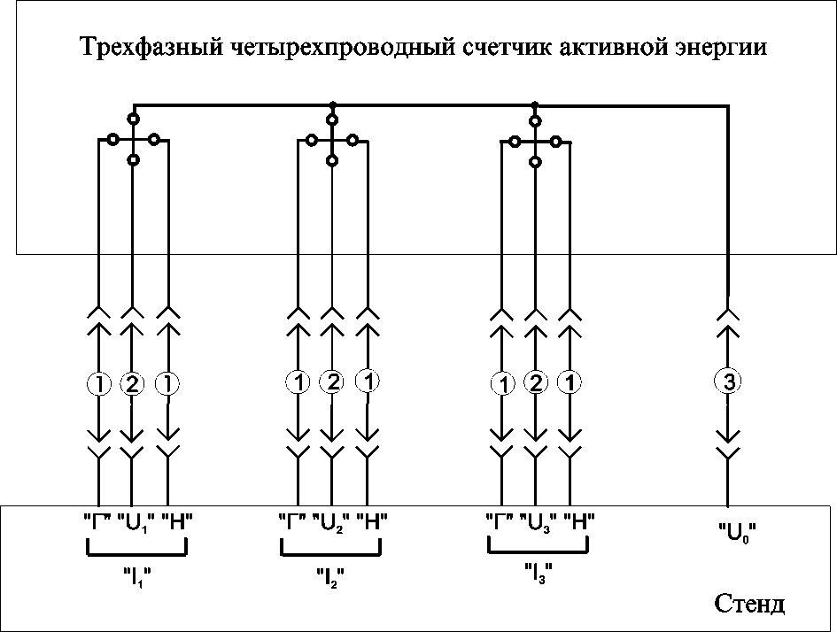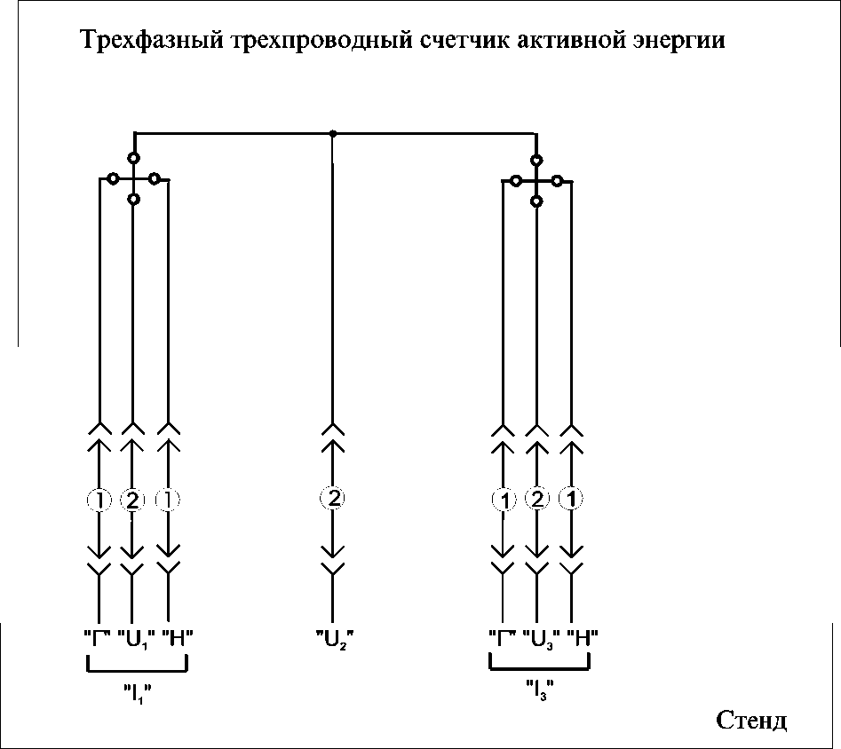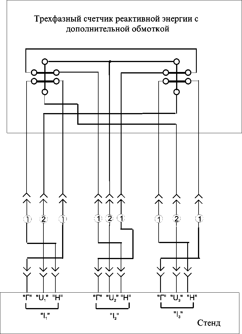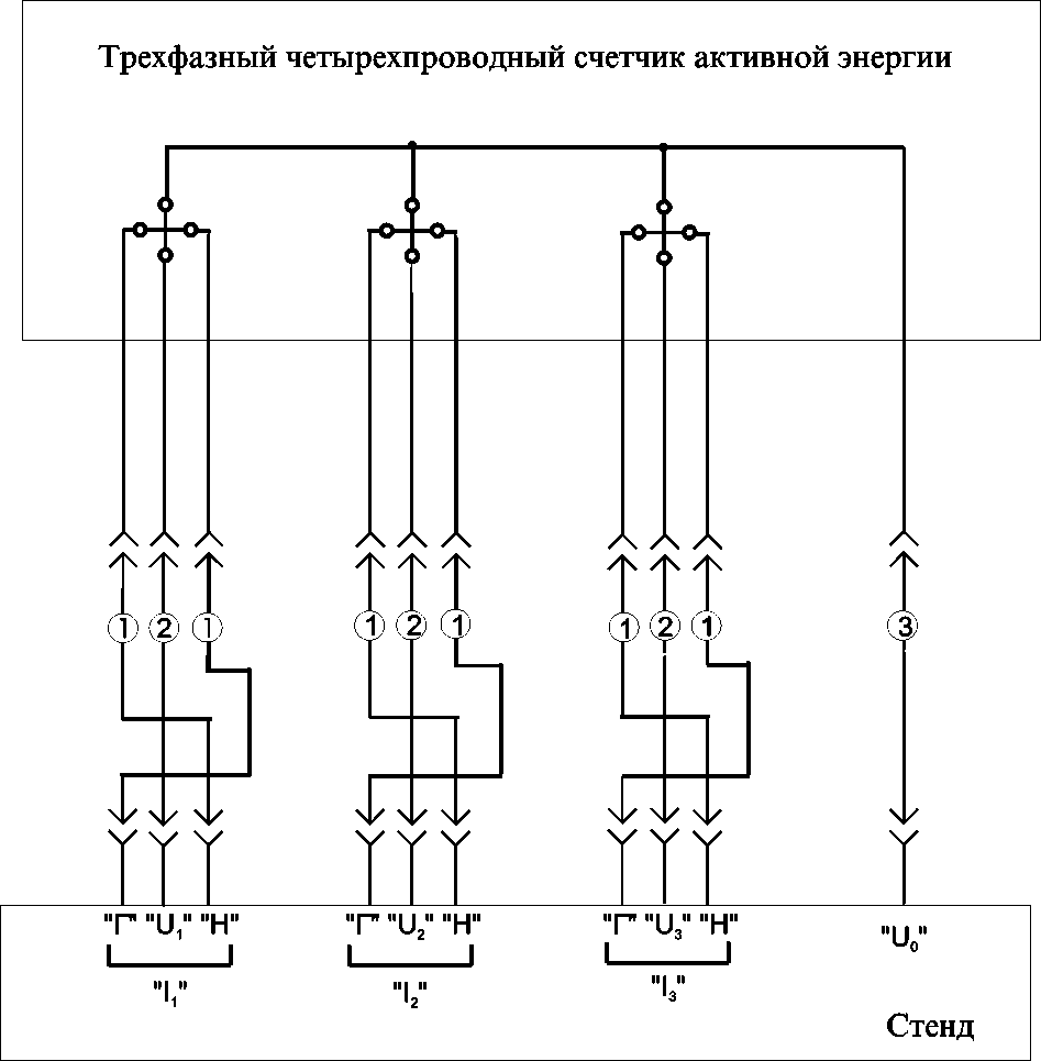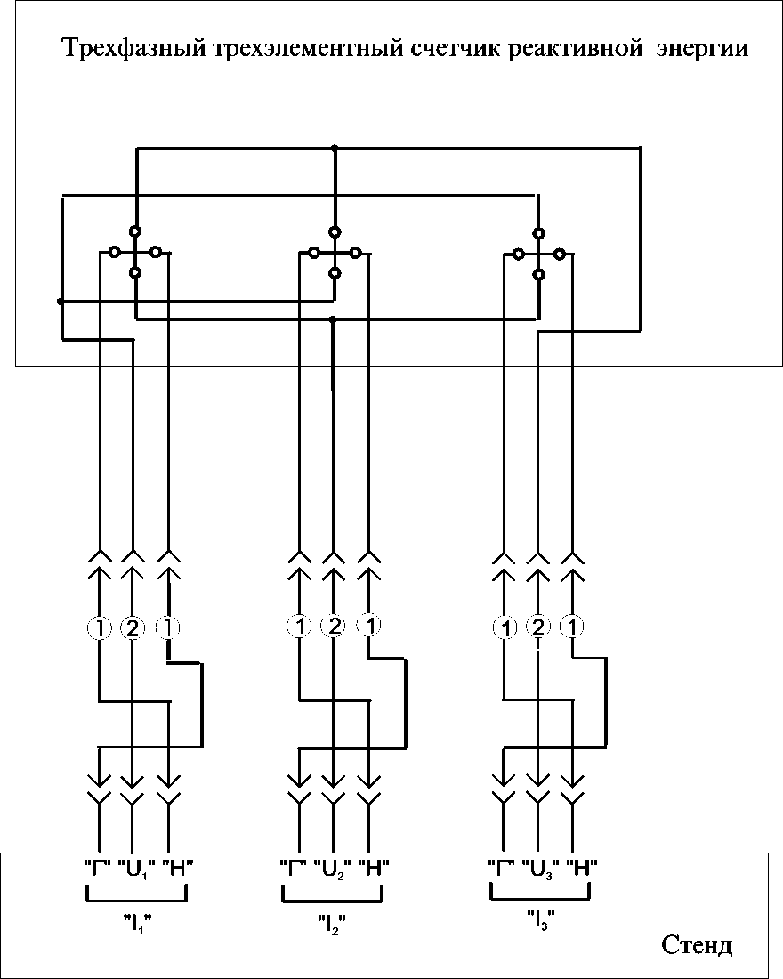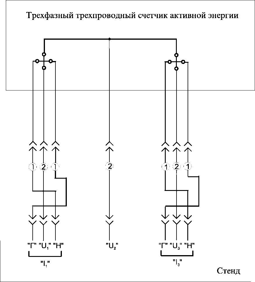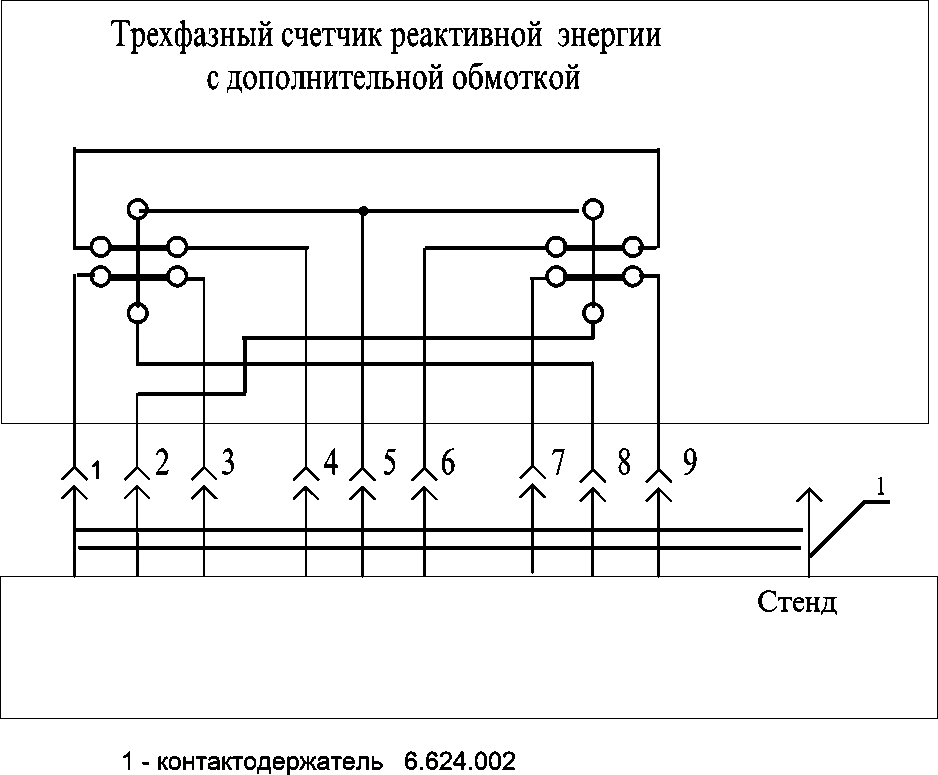 Мощность, потребляемая стендом, по токовой цепи без нагрузки в каждой фазе не превышает 200 V*А при значении тока 100 А.