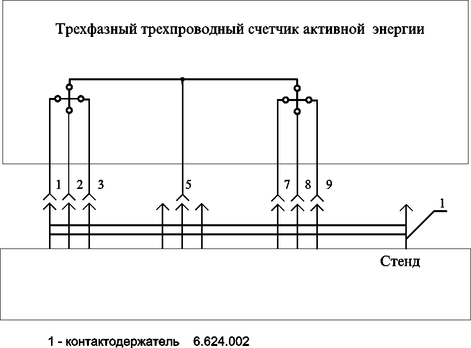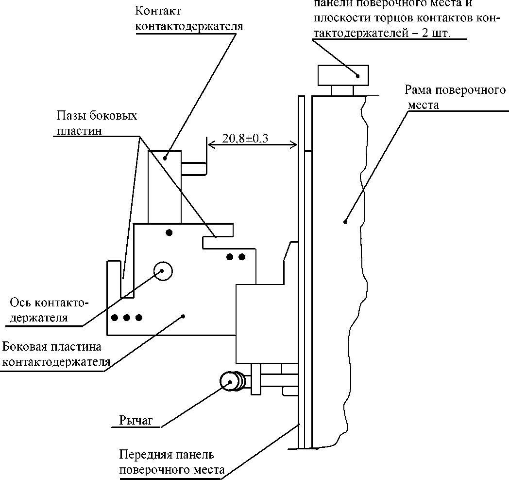 2 В процессе работы возможно возникновение ситуации, при которой для получения надежного контакта необходимо изменить взаимное расположение плоскости передней панели поверочного места (к ней прижимается тыльная сторона корпуса испытуемого счетчика при подключении его контактодержателем) и плоскости торцов контактов контактодержателей. Это возможно выполнить по вышеизложенной методике, изменив оговоренное расстояние.