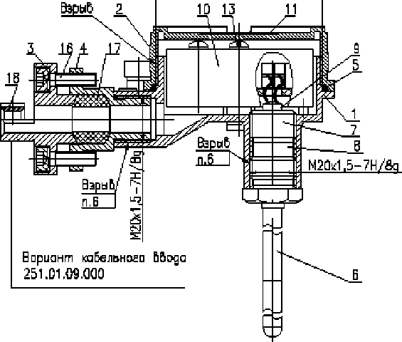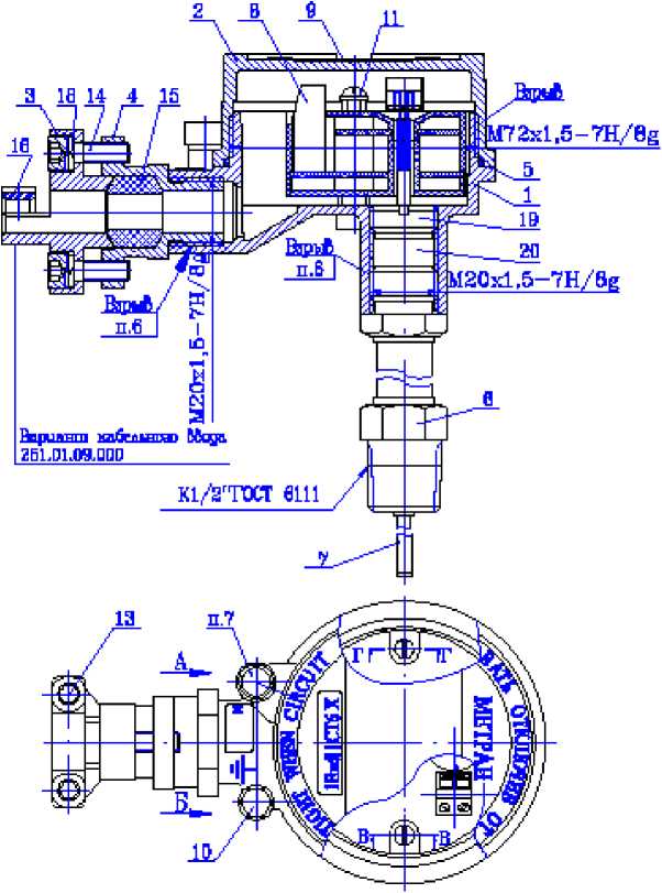 В. Резиновые соединения М20х1,5, обозначенные "ВзрыВ”, стопорить клеем К-300-91.