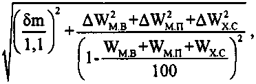 W3 и W„ - средние арифметические значения показаний весов при взвешиваниях заполненного и пустого пикнометра соответственно, г;