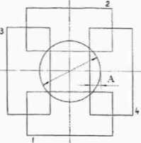 9.4.4 Отклонение от параллельности измерительных поверхностей скоб с верхним пределом измерений свыше 100 мм определяют при застопоренной гайке при помощи концевых мер длины с размером, равным верхнему пределу измерений скобы. Меру или блок последовательно устанавливают между измерительными поверхностями в четырех положениях, указанных на рисунке 1.