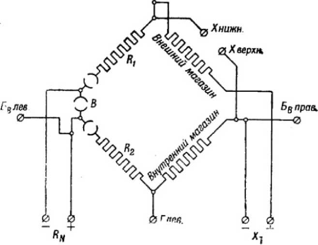 /?, — значение сопротивления .внешнего* плеча, примыкающего к Rx; R\— то же, .внутреннего" плеча, примыкающего к Rx‘,