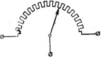 На фиг. 4 показан декадный штепсельный магазин. Схема сравнительного плеча в виде рычажного магазина сопротивления приведена на фиг. 5. В качестве сравнительного плеча может быть применен и реохорд, схематически показанный на фиг. 6.