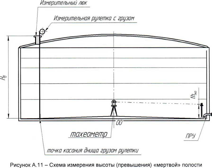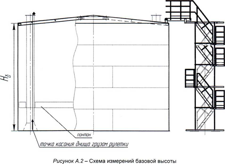 3.10 базовая высота резервуара: Расстояние по вертикале от точки касания днища грузом рулетки до верхнего края измерительного люка или до риски направляющей планки измерительного люка (при наличии)