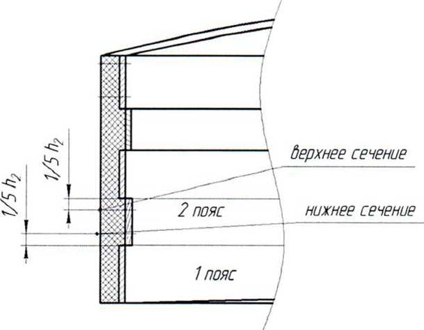 thi+^ - высота превышения вышестоящего i+1-го пояса, значение которого принимают из таблицы Б.5, мм.