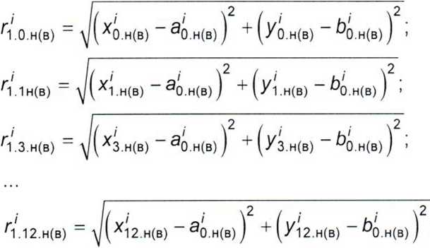 bj_^ - высота превышения призмы, установленной по периметру (/' - 1)-й вышележащей концентрической окружности.