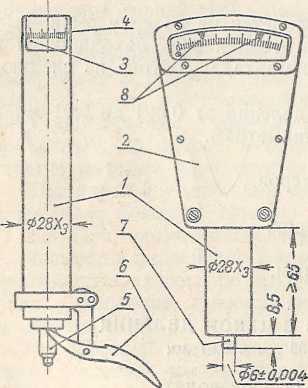 концевой меры стержень опускается, после чего производят отсчет показаний.