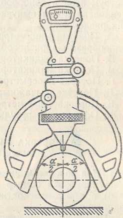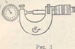 16. Поверку правильности действия седлообразных приспособлений (рис. 2) до 120 мм призводят при помощи широкошкального миниметра с ценой деления 0,002 мм, по комплекту цилиндрических шайб. Каждое приспособление поверяют по двум парам шайб, разность размеров каждой пары шайб должна укладываться в пределы, указанные в таблице 3.