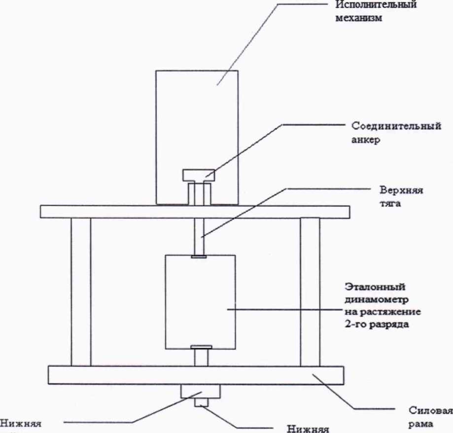 Установить адгезиметр на силовую раму, соединив при этом адгезиметр и эталонный динамометр с помощью специального анкера. Добиться отсутствия люфта между эталонным динамометром и адгезиметром.