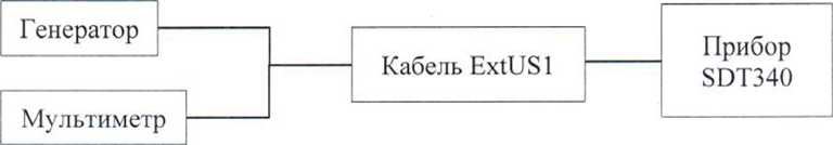 Определение основной относительной погрешности измерений переменного напряжения с использованием кабеля ExtUSl выполняется согласно схеме, представленной на рисунке 2.