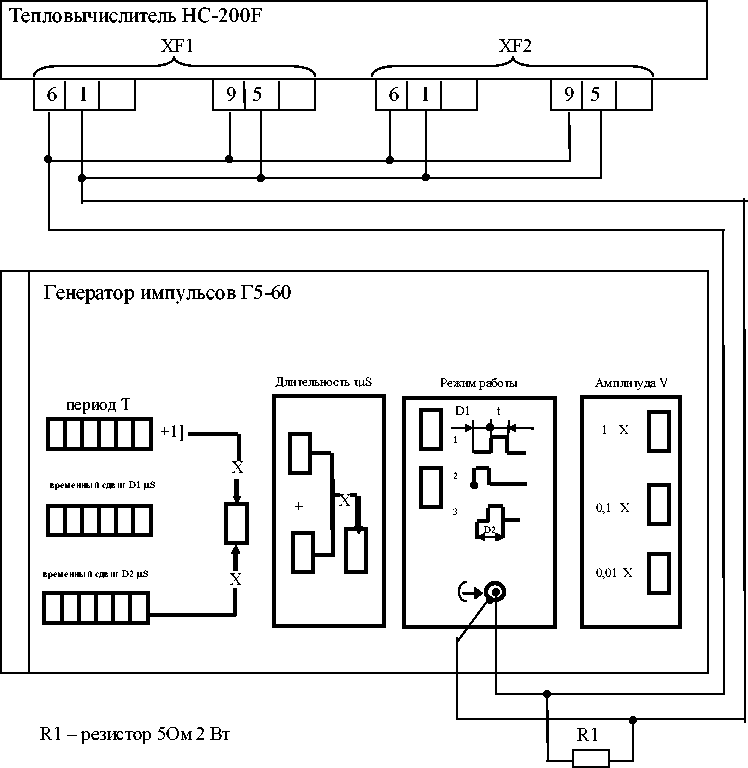 Схема подключения генератора импульсов Г5-60 к частотным каналам