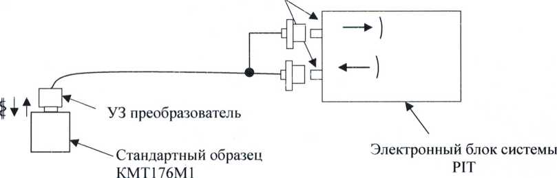 7.3.4.3. Из комплекта образцовых мер толщины КМТ176М1 взять стандартный образец толщины, соответствующий по своему действительному значению началу диапазона или близкий к нему, и установить пьезоэлектрический преобразователь на образец через контактную жидкость. Зафиксировать показания системы. Произвести не менее трех измерений. Аналогичные операции повторить для остальных точек. При получении недостоверных результатов необходимо провести калибровку системы для получения измерений образцов близких к номинальным.