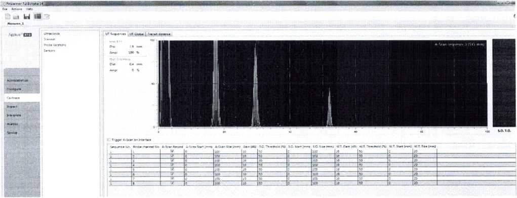 7.3.3.3. Запустить программу «PitScanner» и установить следующие обязательные параметры в разделе «Calibrate» во вкладке «UT Sequences»: