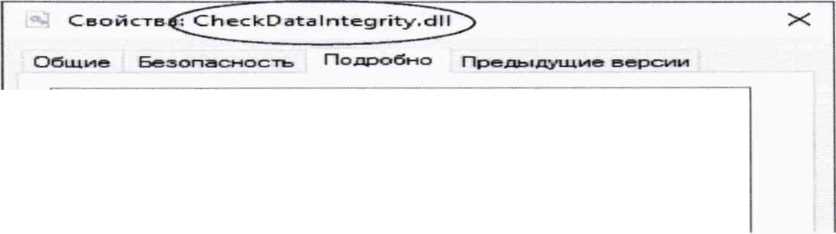 2) Найти файл «CheckDataIntegrity.dll» по следующему пути «C:\Pyramid\CollectorService\». Выделить файл и нажать правую кнопку мыши, в выпавшем меню выбрать пункт - «свойства». В выпавшем окне выбрать закладку «Подробно». В верхней части окна (рисунок 2) указано идентификационное наименование ПО -«CheckDataIntegrity.dll».