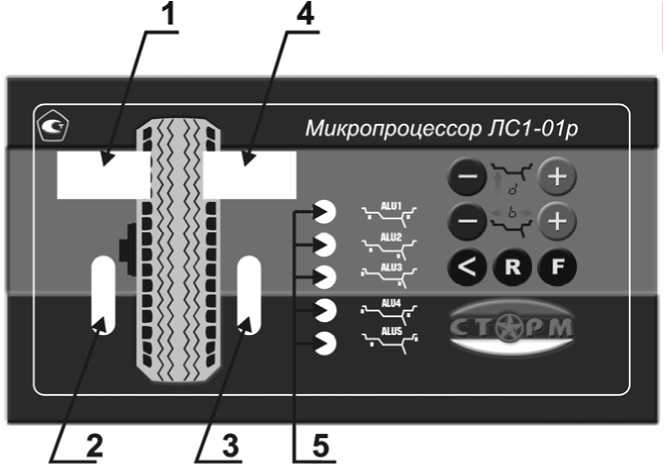 4 - индикаторы, показывающие вес корректирующего груза в граммах на внешней плоскости колеса.