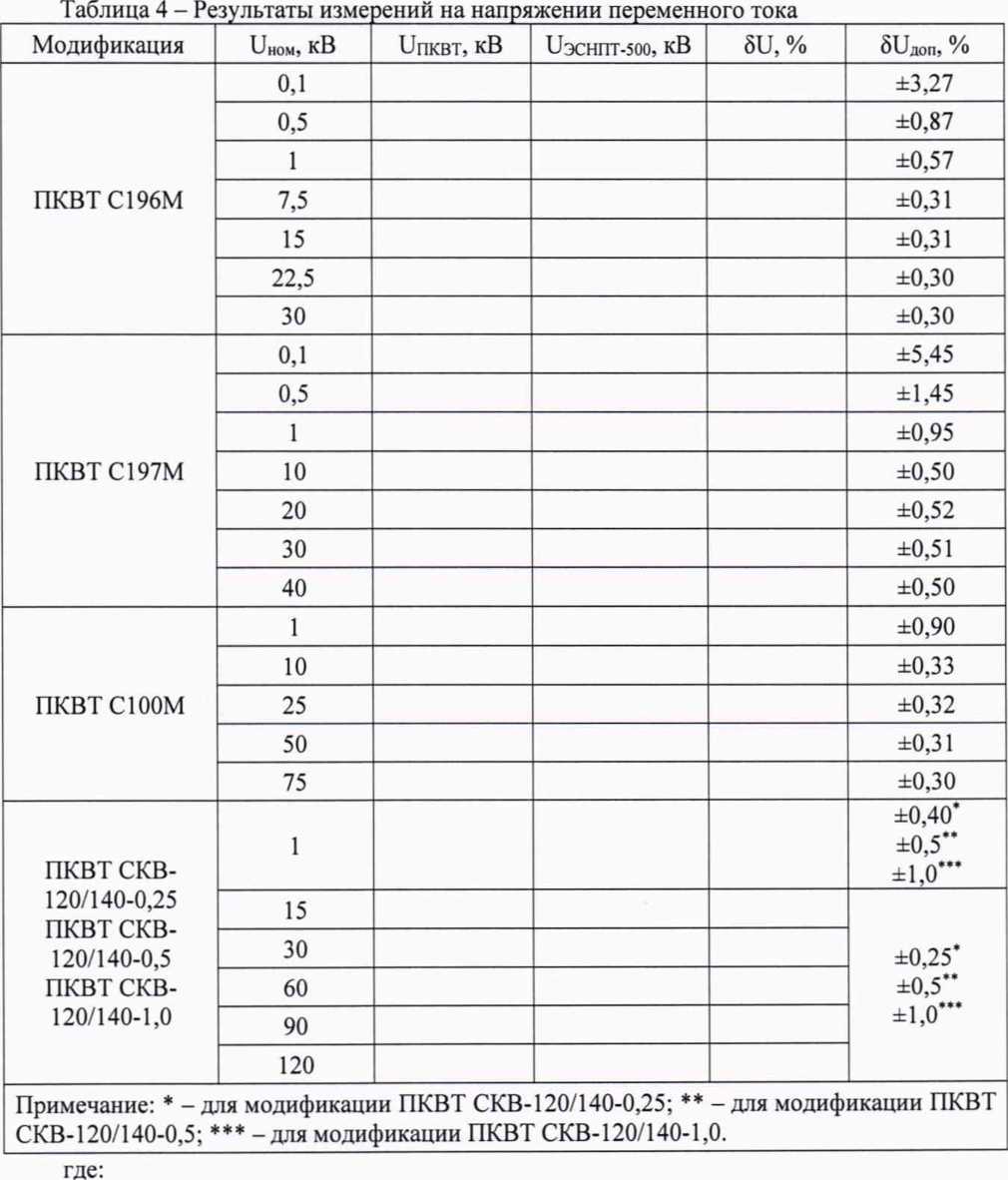 - Ипквт - значение напряжения, измеренное поверяемым киловольтметром;