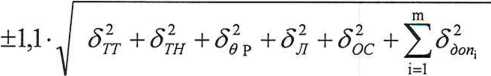 Примечание - Формулы (1), (4), (5) и (7) даны для случая, когда отклонение внешних влияющих величин от нормальных значений вызывает дополнительные погрешности только у счетчика электроэнергии, а составляющими погрешности измерения электроэнергии обусловленными погрешностью задания интервала времени интегрирования электрической мощности, погрешностью передачи информации по ГОСТ 4.199-85, погрешностью обработки данных можно пренебречь.
