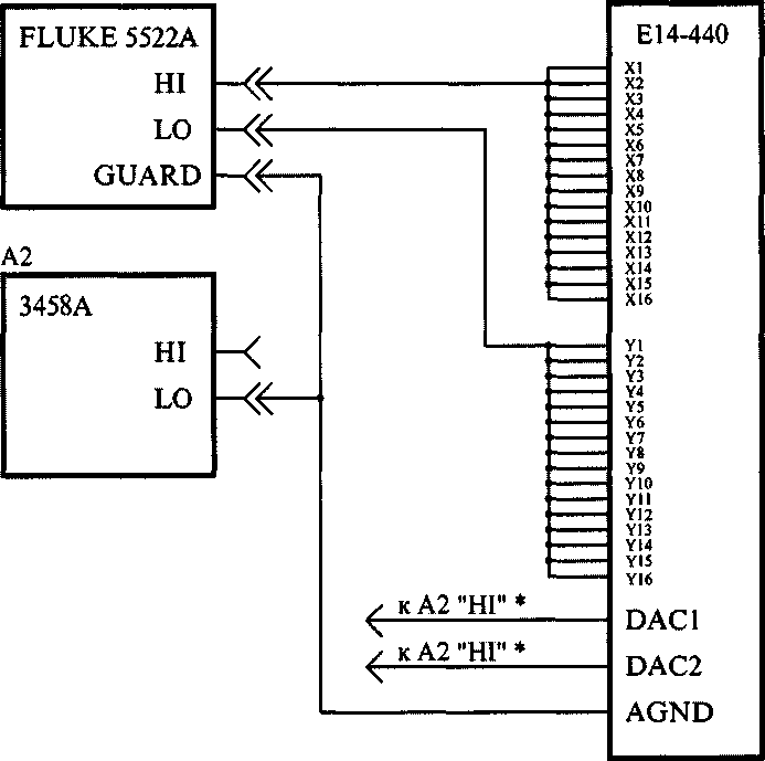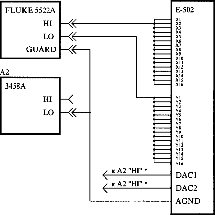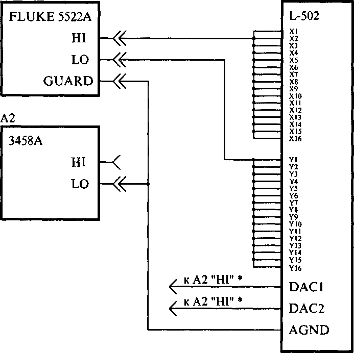 5) подключить выход «DAC2» L-502 к входу мультиметра 3458А;